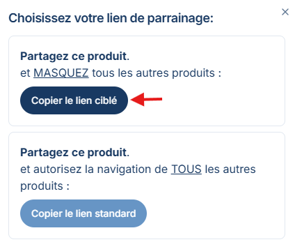 - Clique sur le bouton "Partager avec le lien de parrainage" sur la page du produit.