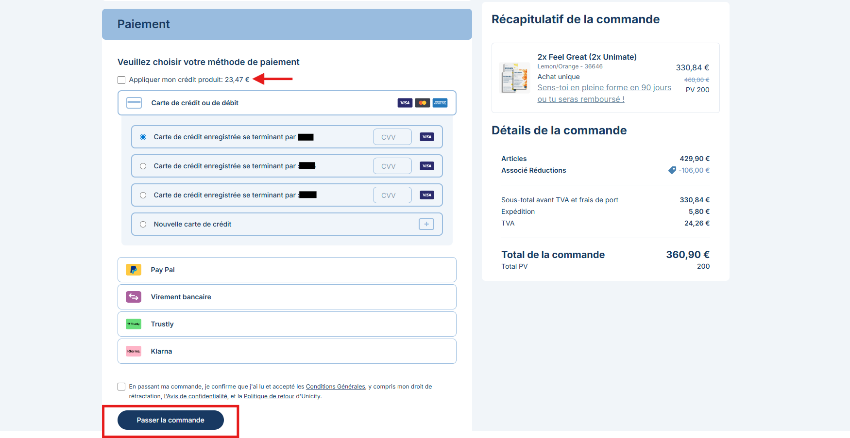 Sur la page de paiement, coche la case "Appliquer mon Crédit FG", puis passe ta commande.