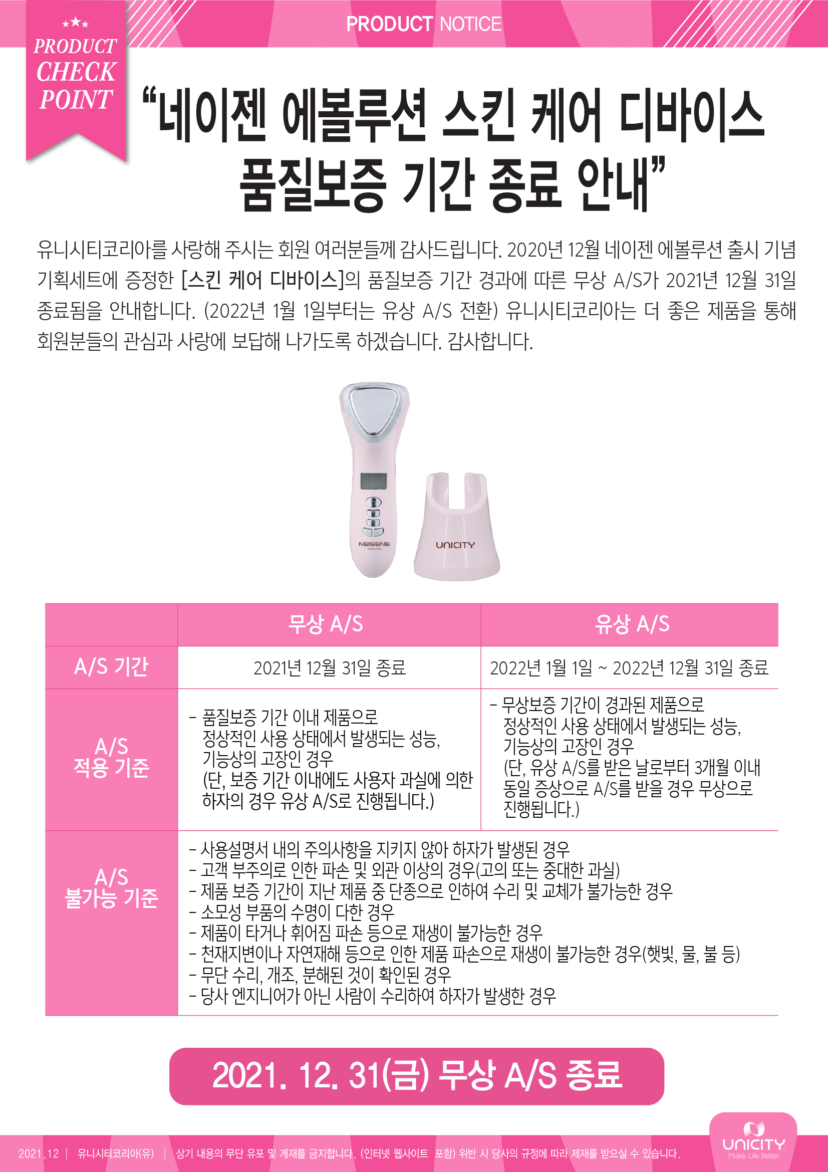 네이젠 스킨 케어 디바이스 품질보증 기간 종료 안내