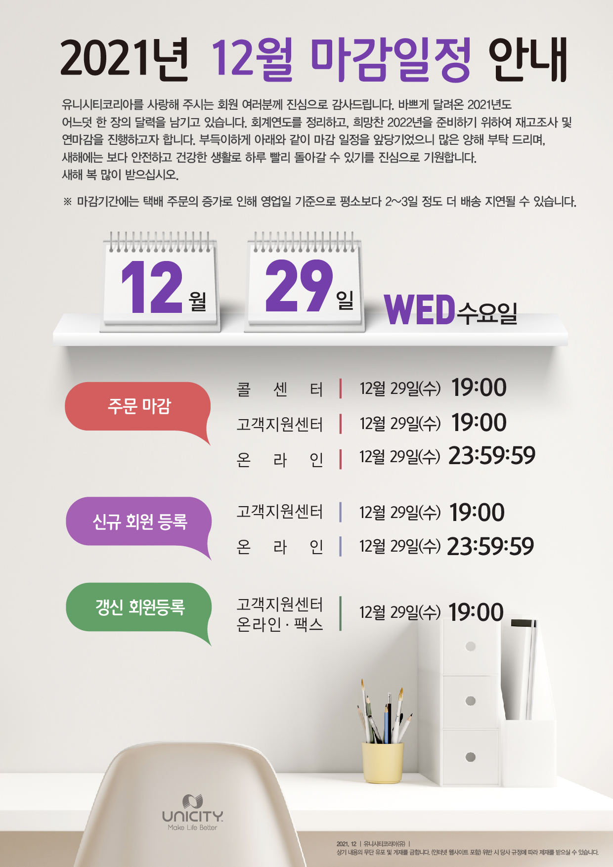 2021년 12월 마감일정 안내