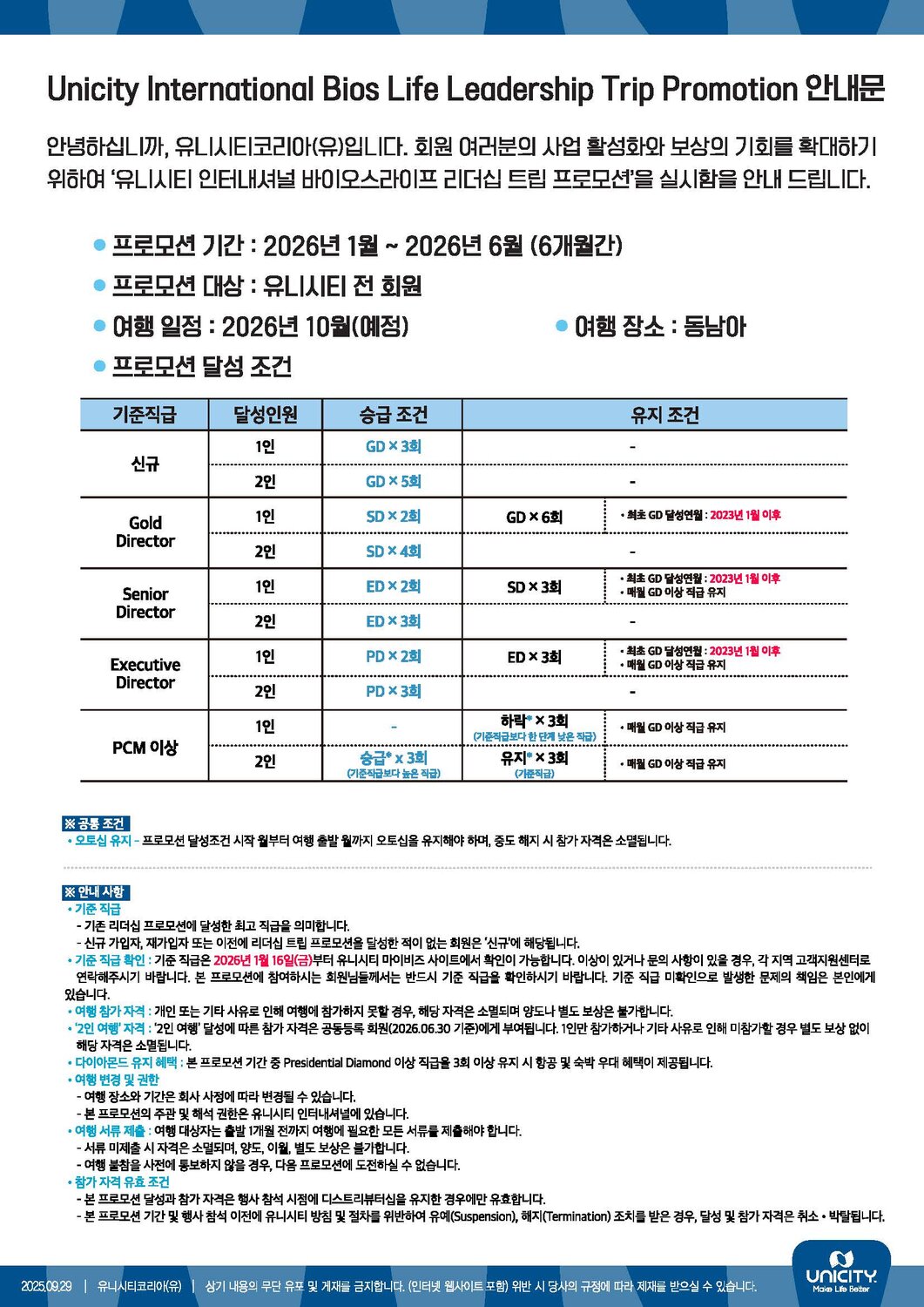 Unicity International Bios Life Leadership Trip Promotion 안내문