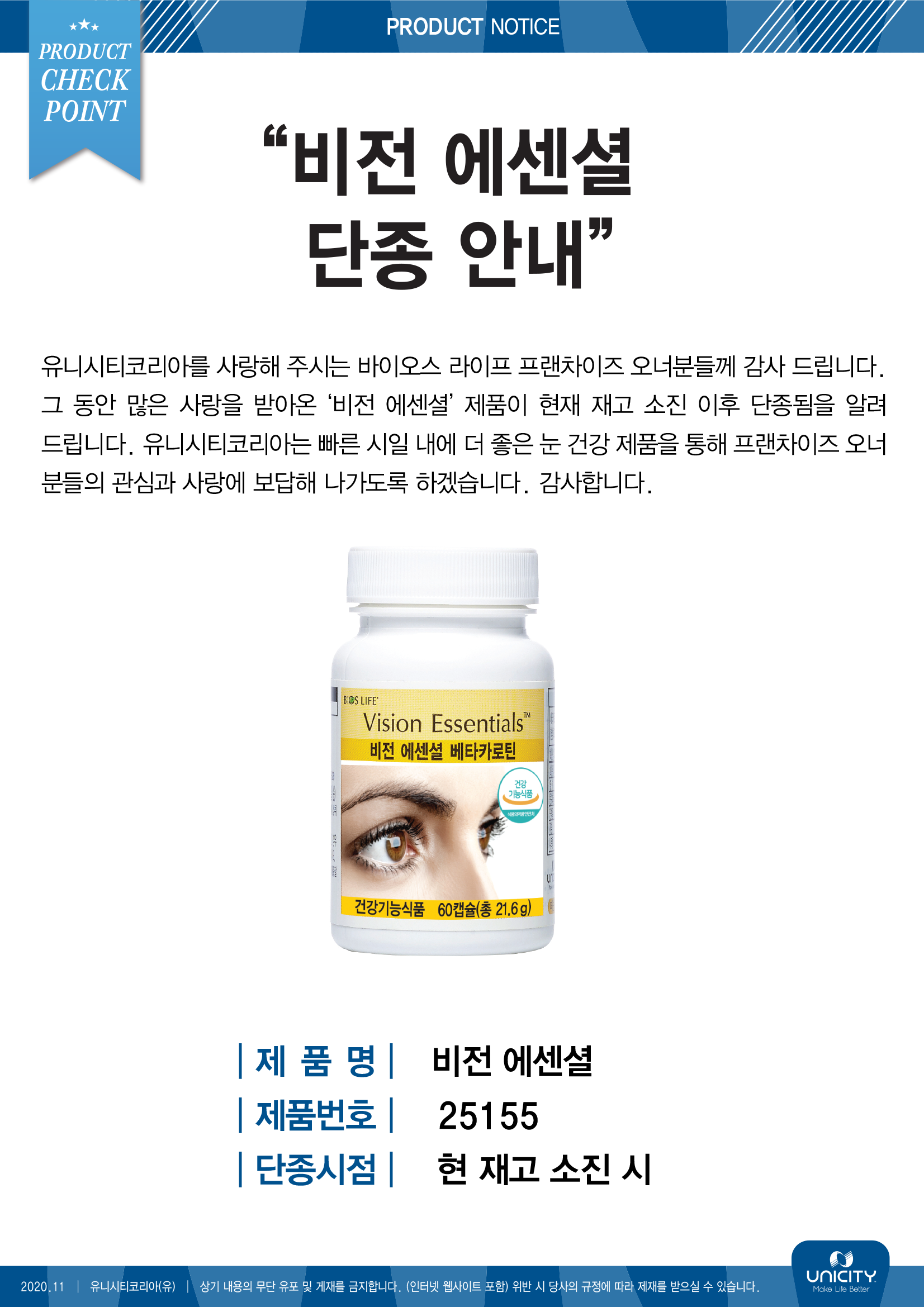 유니시티코리아, 눈 건강을 위한 ‘비전 에센셜 플러스’ 출시