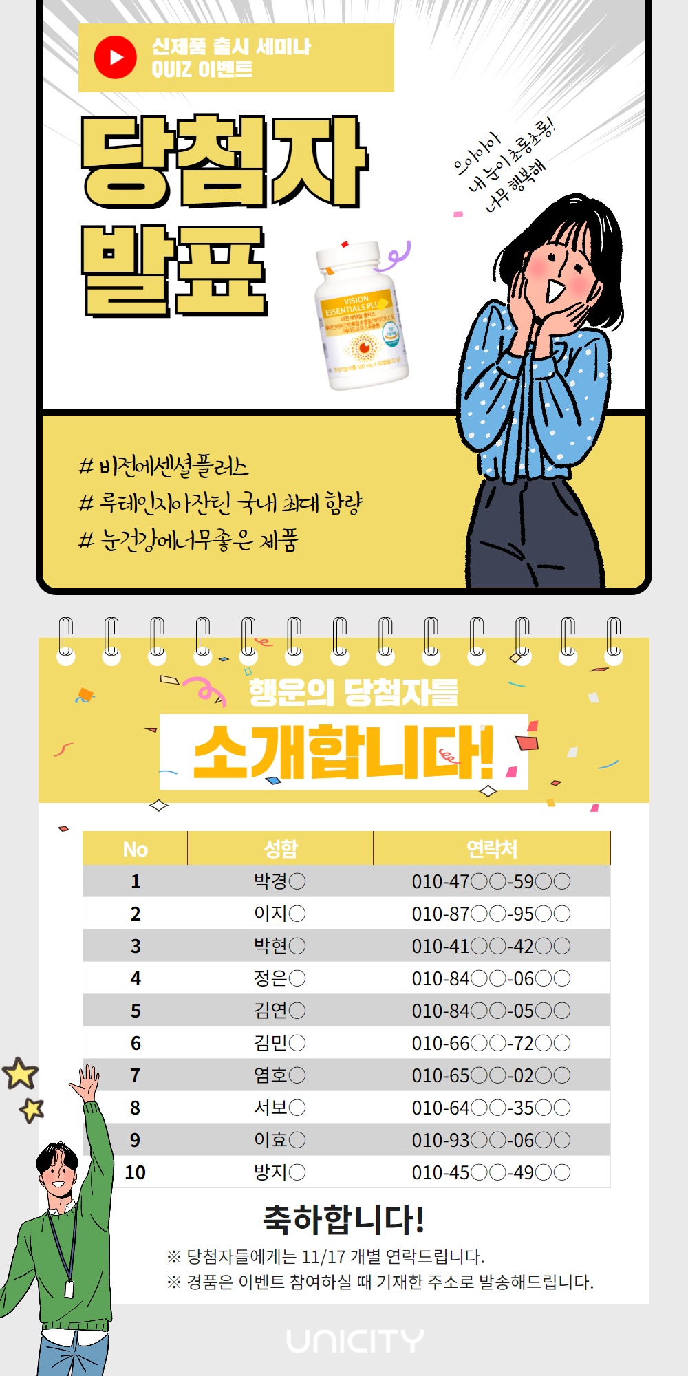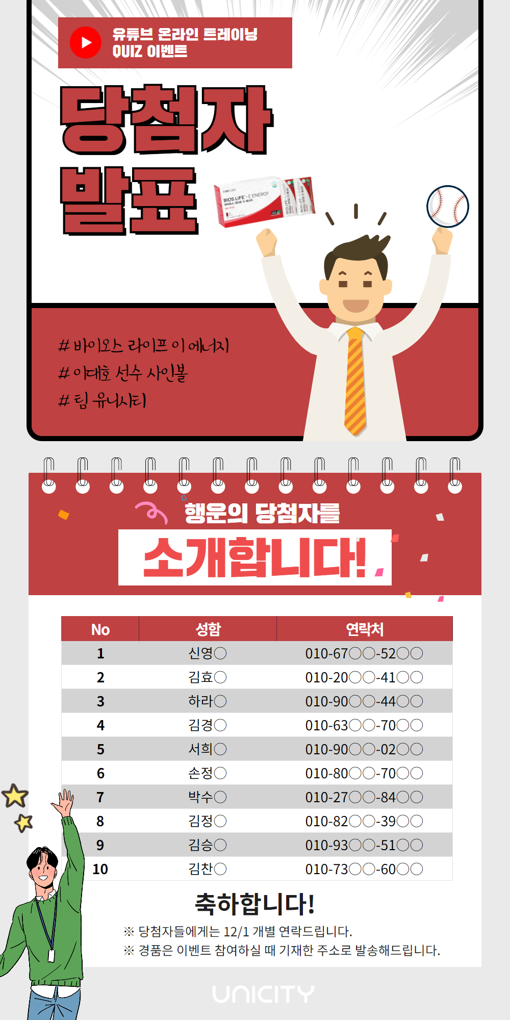 11/25 팀 유니시티 마케팅 온라인 트레이닝 퀴즈 이벤트 당첨자 발표