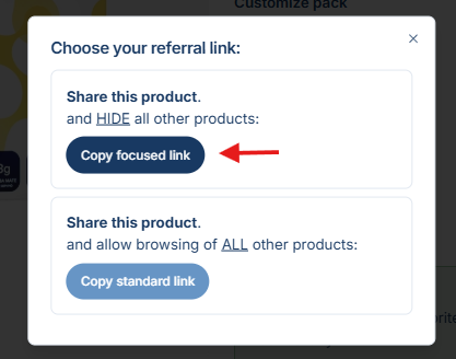 - Select “Copy Focused Link” to copy a referral link that leads directly to that product.
