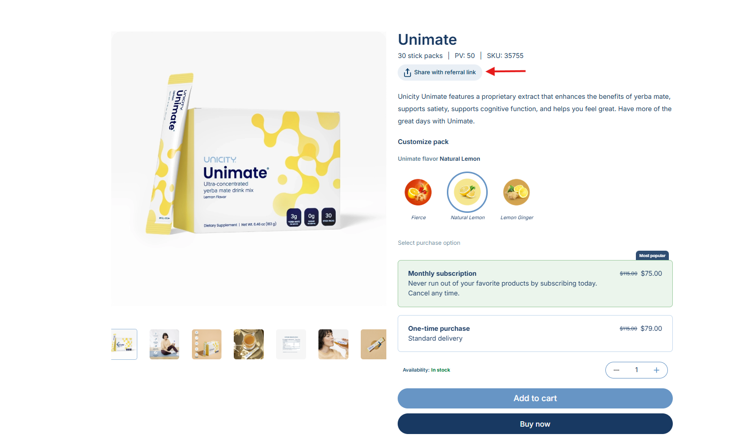 You can now generate and share referral links that lead directly to a specific product page on shop.unicity.com. This means your referral will land exactly where they need to be, without being redirected to other products or pages.