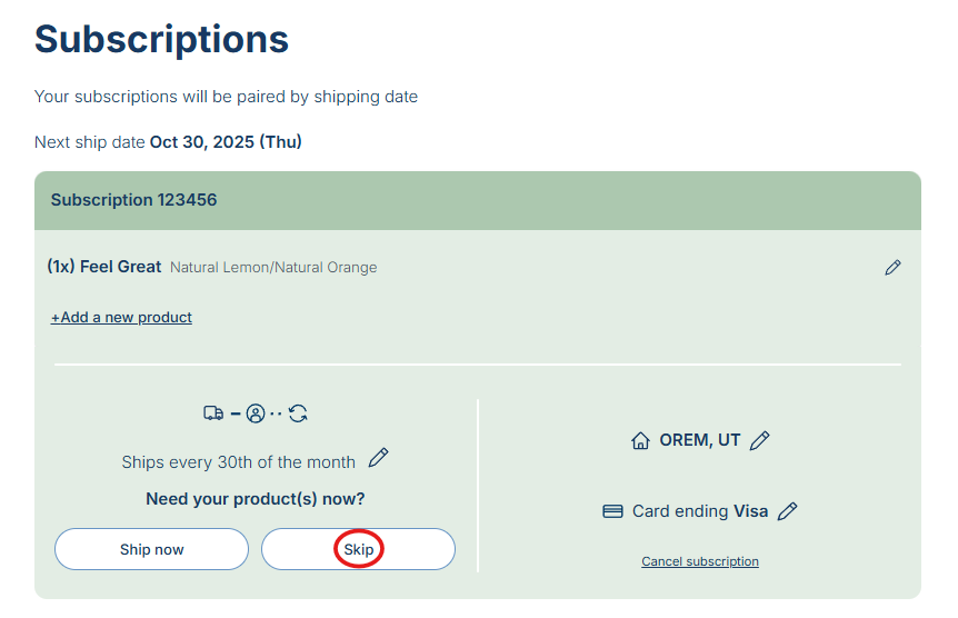 Want to skip your subscription order for this month? Follow the steps below to do so.