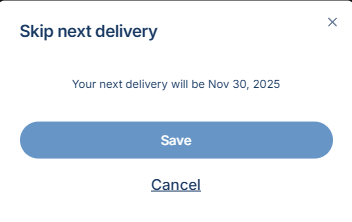 After clicking Skip, a pop-up window will appear showing your new subscription order date. To finalize the change, click Save.