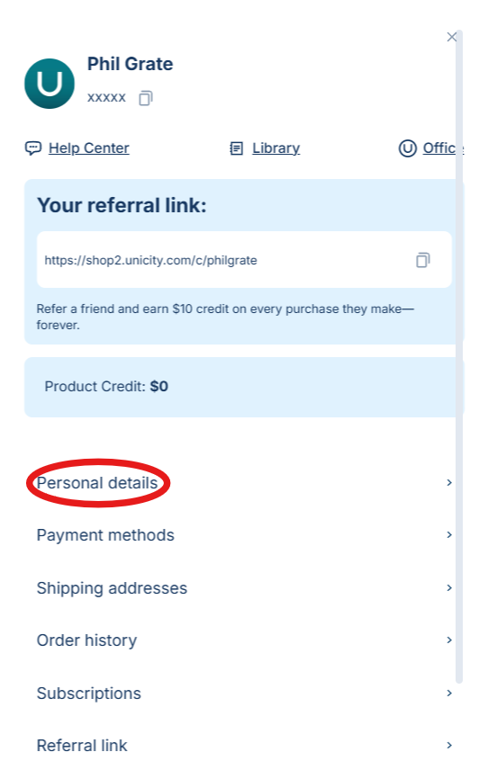 From the dropdown menu, click on “Personal Details.” This will take you to your account settings.