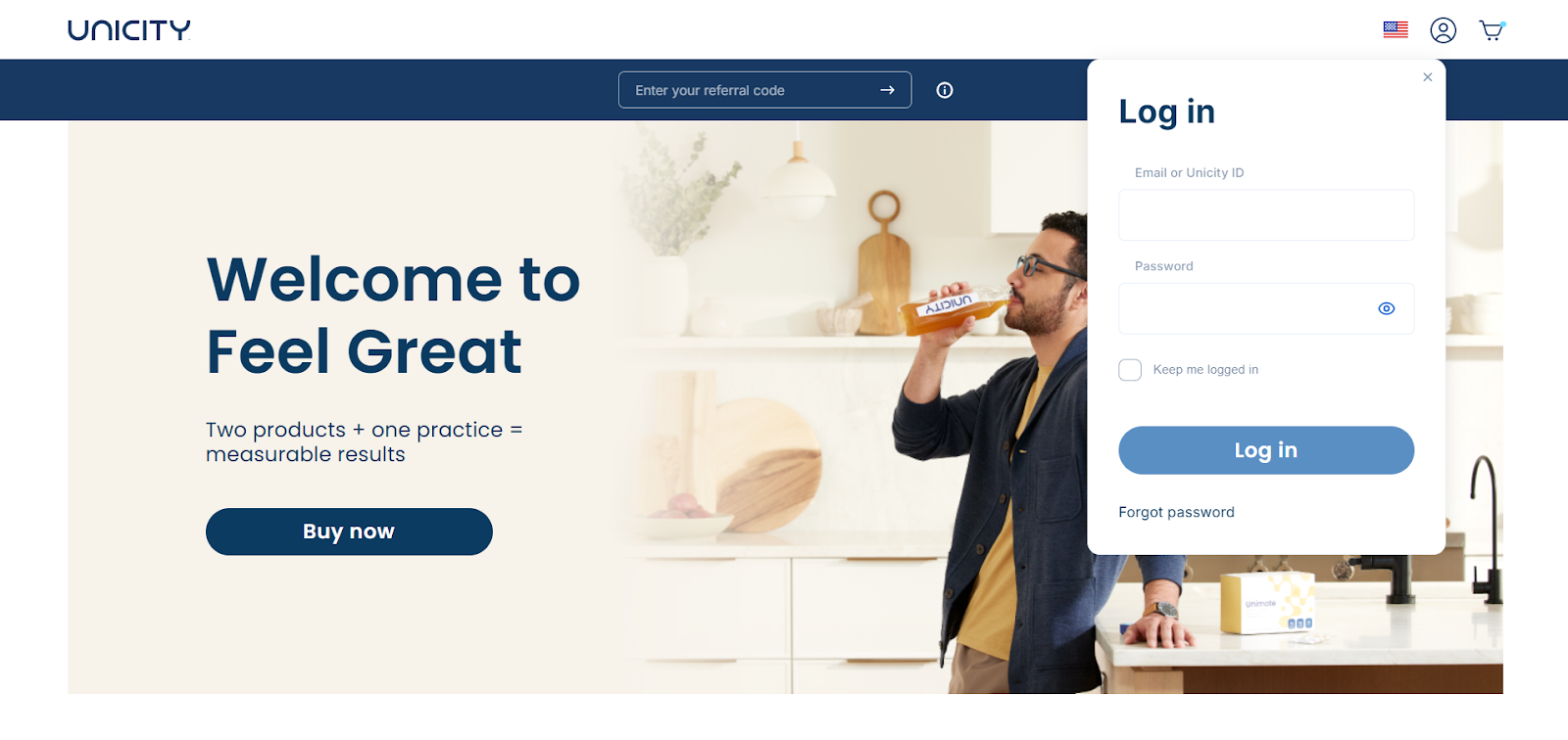 Go to ufeelgreat.com and log in with your email/Unicity ID and password.