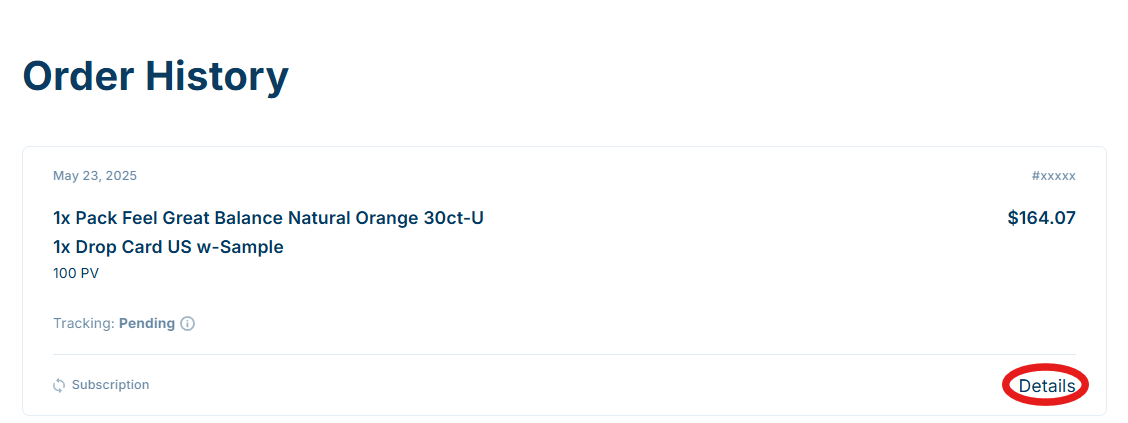 Find the order you want to review, then click “Details” next to it to view more information.