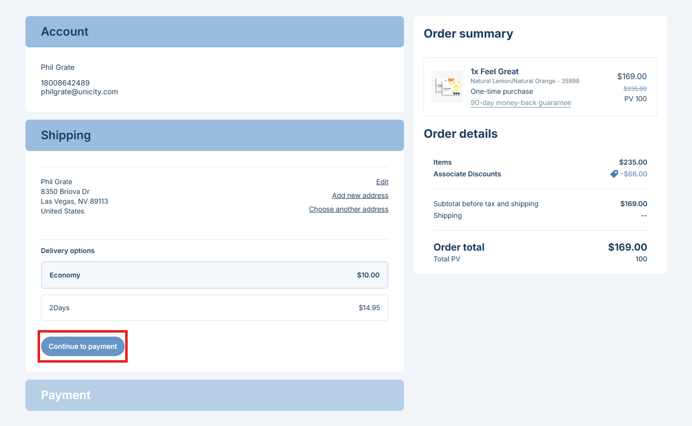 Once on the Checkout Page, edit your shipping details if needed, select the delivery option you would like to use, and then click on “Continue to payment.”