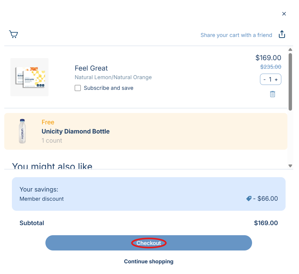 If you wish to proceed to checkout, click on “Checkout.” If you wish to continue browsing other products, click on “Continue Shopping.”