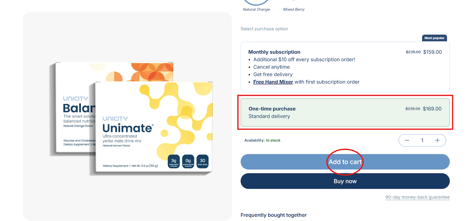 Browse the shop and add the items you’d like to purchase to your cart. (Make sure it’s under the one time purchase option.)