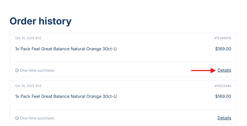 Click on the order you want to track, then select Details to view its current status and shipment information.