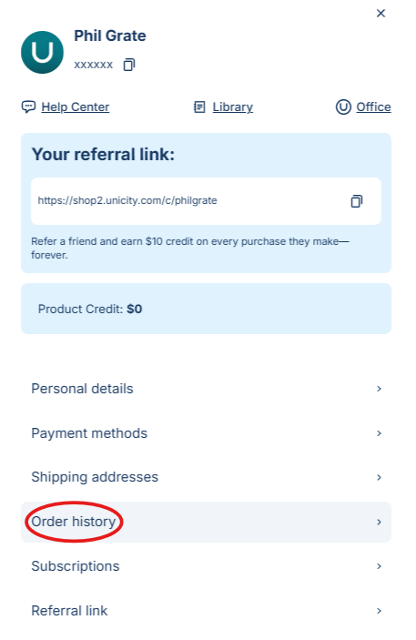 From the dropdown menu, select “Order History.” This will take you to a page that shows all your orders.